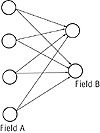 Adaline is the acronym for adaptive linear element, due to Bernard Widrow and Marcian Hoff. It is similar to a Perceptron. Inputs are real numbers in the interval [1,+1], and learning is based on the criterion of minimizing the average squared error. Adaline has a high capacity to store patterns. Madaline stands for many Adalines and is a neural network that is widely used. It is composed of field A and field B neurons, and there is one connection from each field A neuron to each field B neuron. Figure 5.6 shows a diagram of the Madaline.